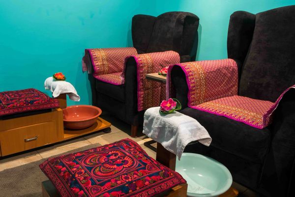 Siéntate, relájate y disfruta de un masaje de pies y pedicura.